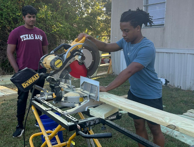 Student helps build a ramp on Sunday, Oct. 5, 2025.